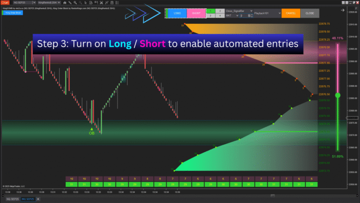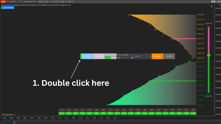 KingDOM$ is an automated entry system powered by Depth of Market (DOM) data. It reads real-time buy/sell pressure and helps execute trades at optimal moments.